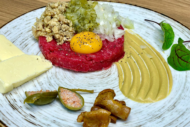 na kapuście zasmażanej z dodatkami (chrzan, ketchup, musztarda)